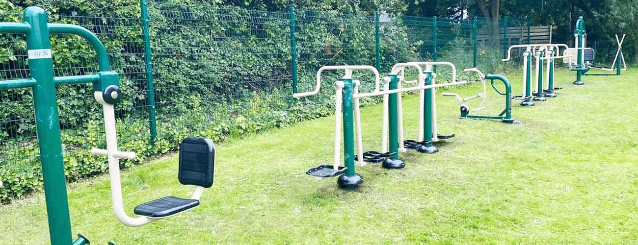 A variety of individual and multi-user pieces of outdoor gym equipment were selected for the site. Single user pieces allow children to set their own pace and, while concentrating on their own movement, allow those less engaged in sport to enjoy the equipment without feeling too slow or intimidated. Those athletic children could set their own pace, moving faster, building strength and fitness, while those who need to build fitness levels could do so gradually, recording and improving personal results without facing the embarrassment of coming last or being the slowest.