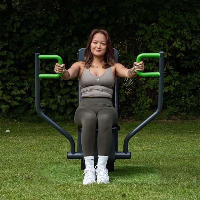 Part of our new resistance range, the Resistance Chest Press, featuring an adjustable weight stack, is purpose-built to develop strength and definition in the chest, shoulders, and arms. Just like an indoor gym chest press, you simply choose your desired resistance and begin your workout for an effective upper-body challenge.